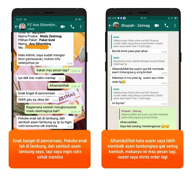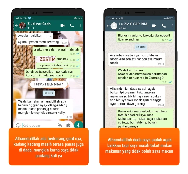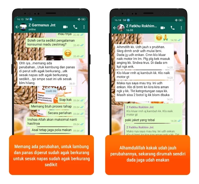 Madu Zestmag sudah berhasil membantu banyak orang mengatasi keluhan lambung, hal ini dibuktikan dengan banyak testimoni yang masuk harian yang tak terbendung banyaknya, baik melalui percakapan WA, video, ulasan di marketplace, dll.